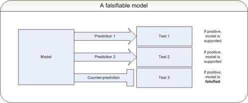 For a model to be regarded as scientific, there must be some way of testing whether it is false. A model remains in contention as long as no falsifying evidence appears from such tests.